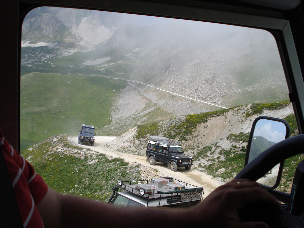Wir haben es größtenteil querfeldein über alte Militärstrassen, Schmugglerpfade und alte Pässe gemacht. Mit einer wirklich netten Truppe aud Landyfahrern, allesamt mit Defendern natürlich. Noch unerfahren damals, hatten wir schnell den Namen "der englische Patient" weg. Ausgestattet mit dem Nötigsten, hatten wir genau so viel Spaß, wie die erfahrenen Weltenbummler mit ihren High Tech Landies. Geschlafen haben wir im Iglu- und Dachzelt. Toiletten und Duschen gab es nicht, bzw nur alle paar Tage. Ohne TV und PC hatten die Kinder erst Angst um ihr Überleben, wollten nach unserer Rückkehr aber auch am besten gleich wieder los.
